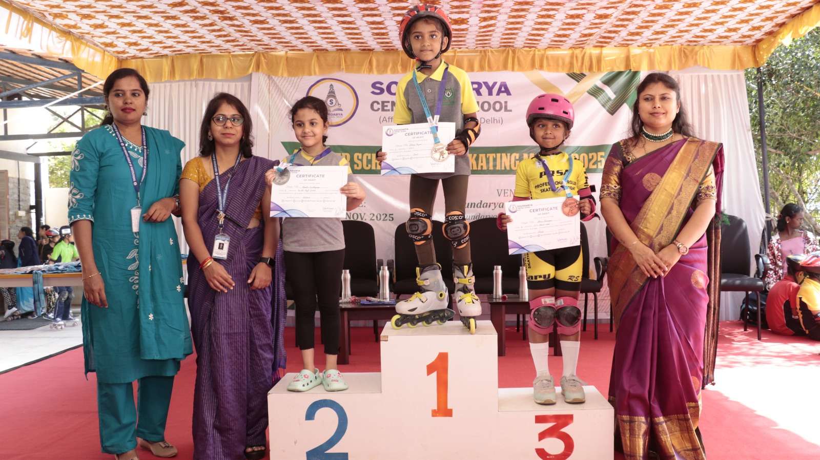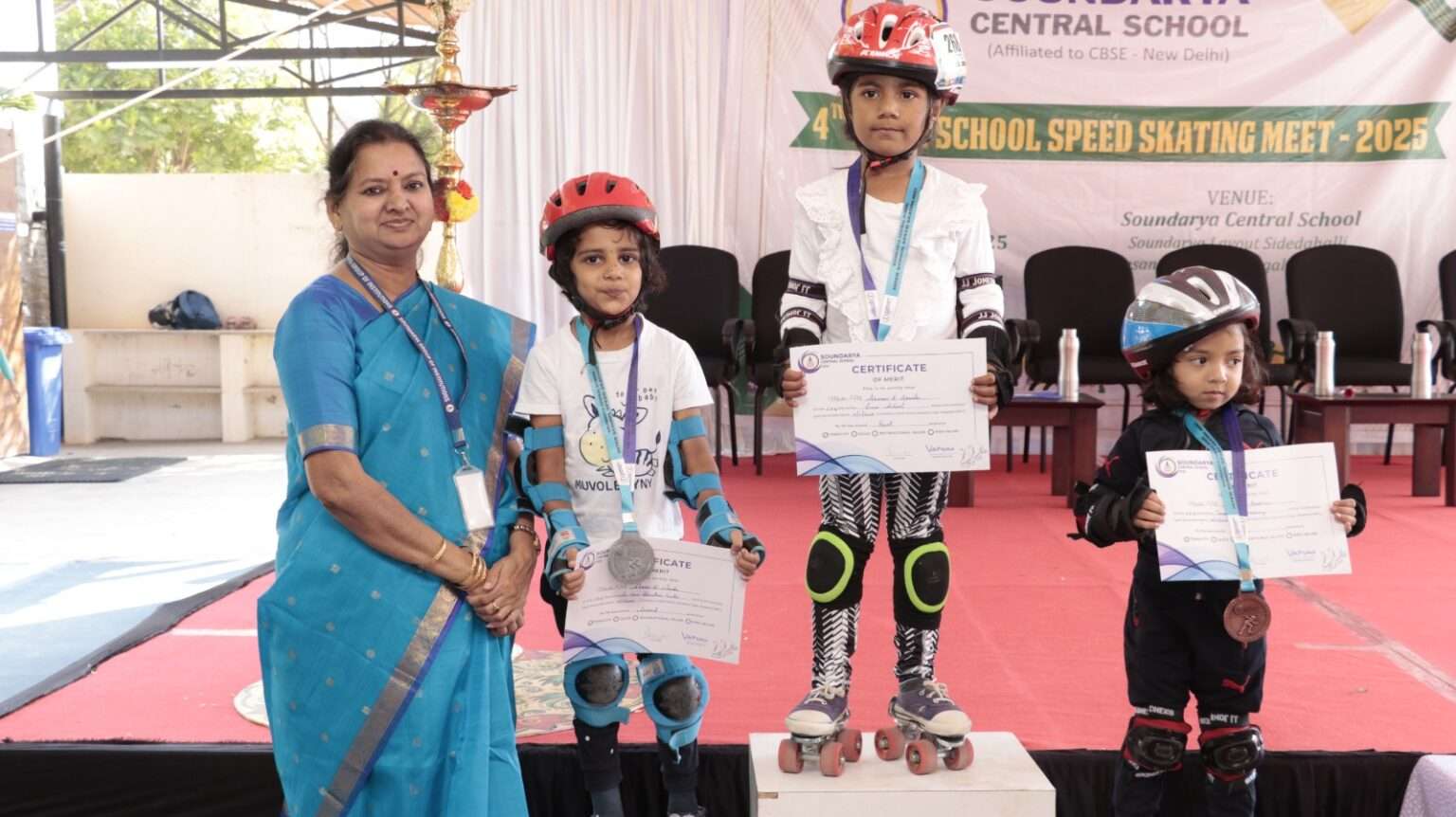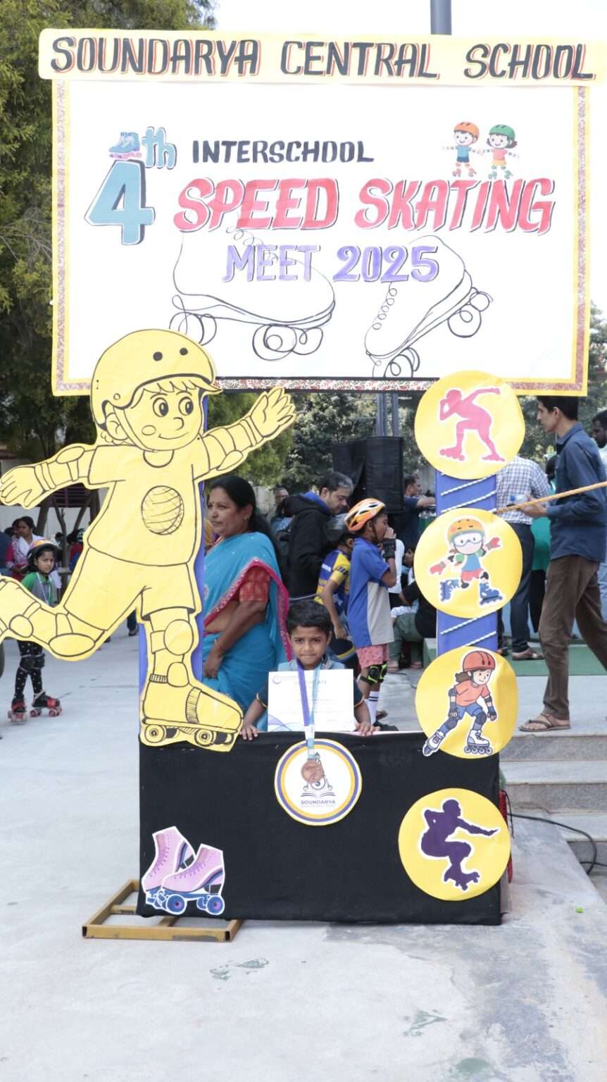 Soundarya Central School proudly hosted the 4th Inter-School Speed Skate Meet 2025, bringing together the thrill, passion, and competitive spirit of 600 young skaters from reputed schools. The skating rink buzzed with energy as participants showcased speed, skill, and determination in every race.