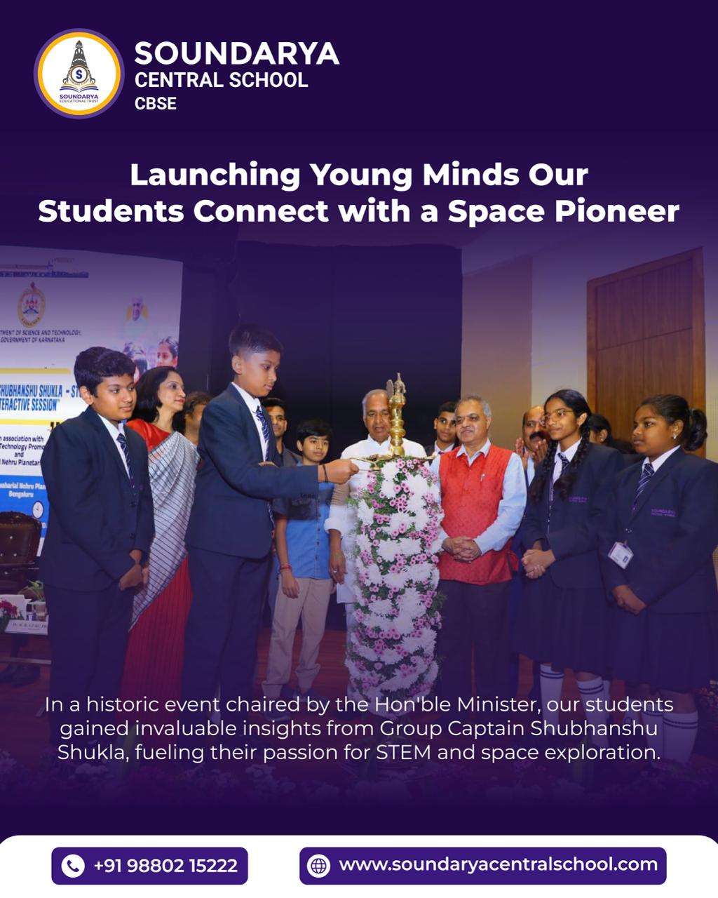 In a milestone event that has filled us with immense pride, our students had the rare and incredible opportunity to participate in the Astronaut–Student Interaction Program, organized by the Karnataka Science and Technology Promotion Society (KSTePS).