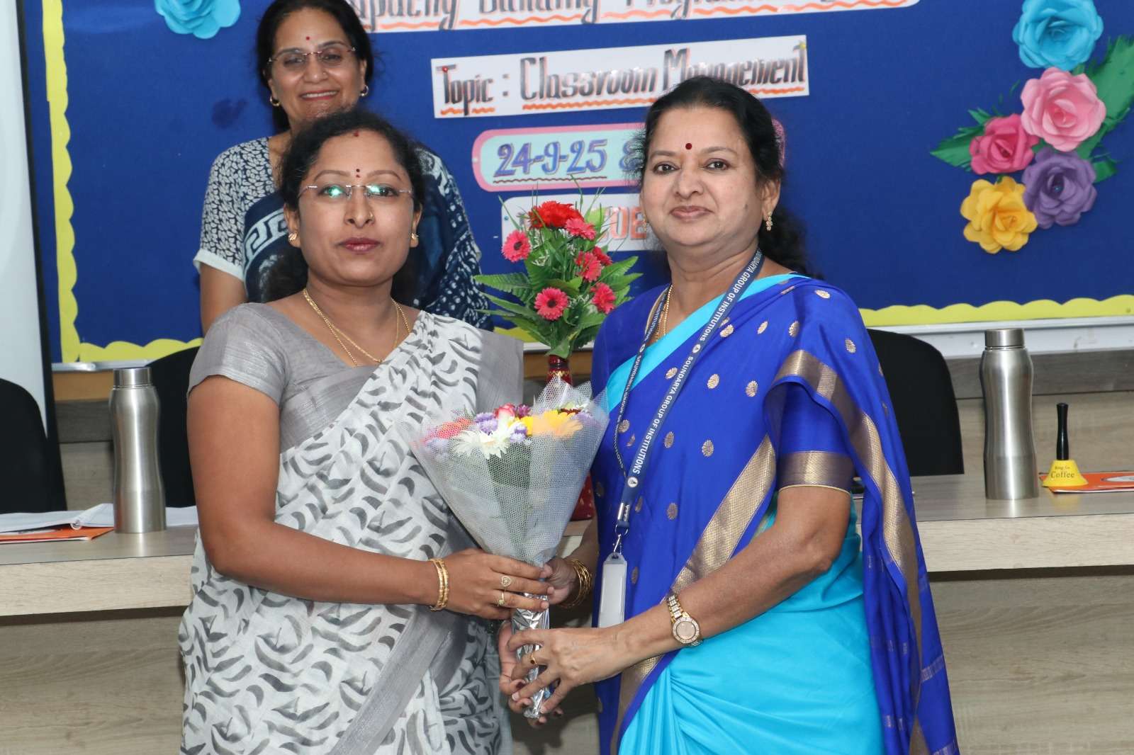 The sessions were conducted by the resource persons Mrs. Madhushree and Mrs. Nirmala Dwivedi. They focused on key aspects such as understanding classroom management, components of effective management, VARK learning styles, instructional planning, and the importance of physical arrangement in classrooms.