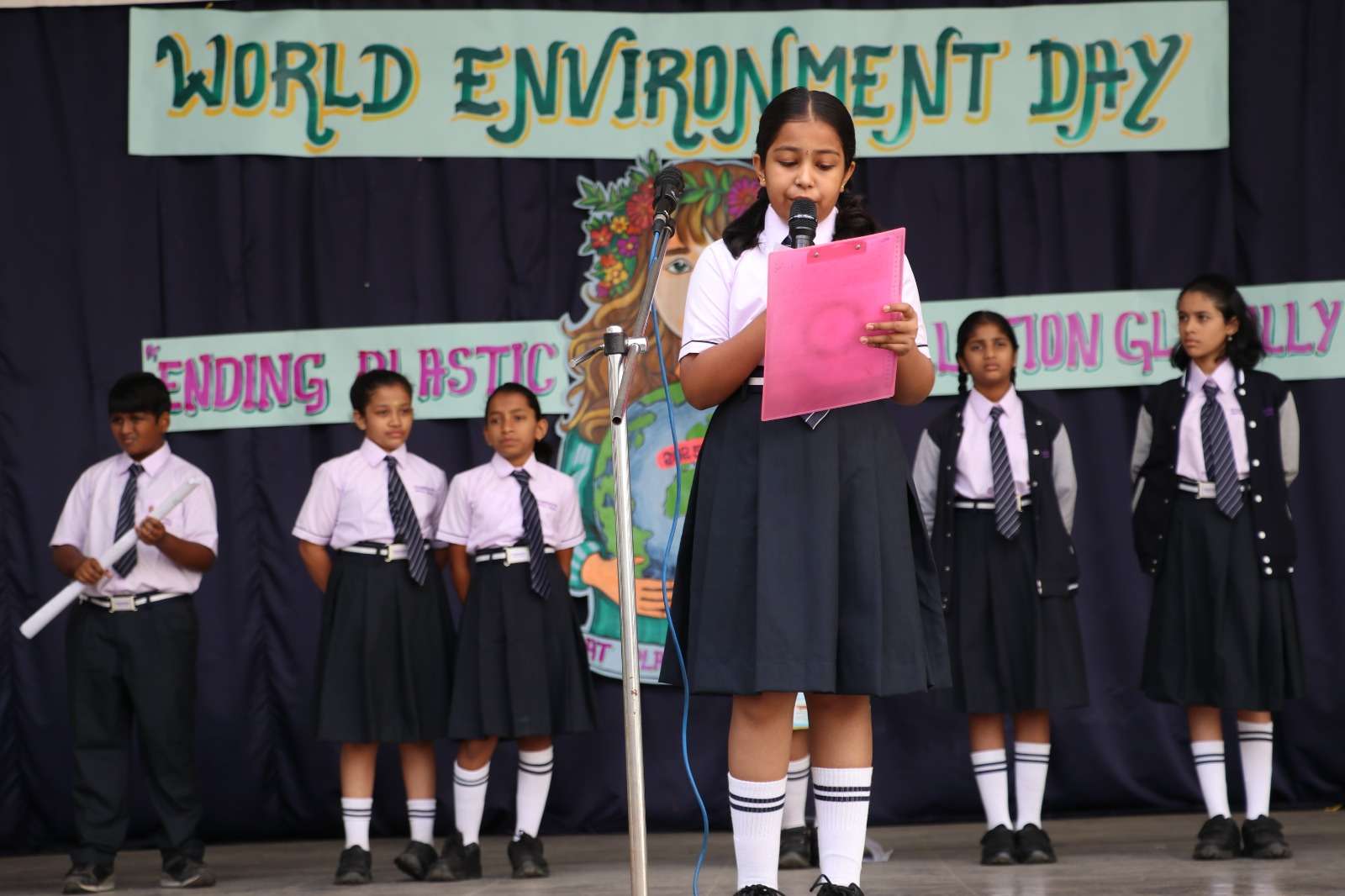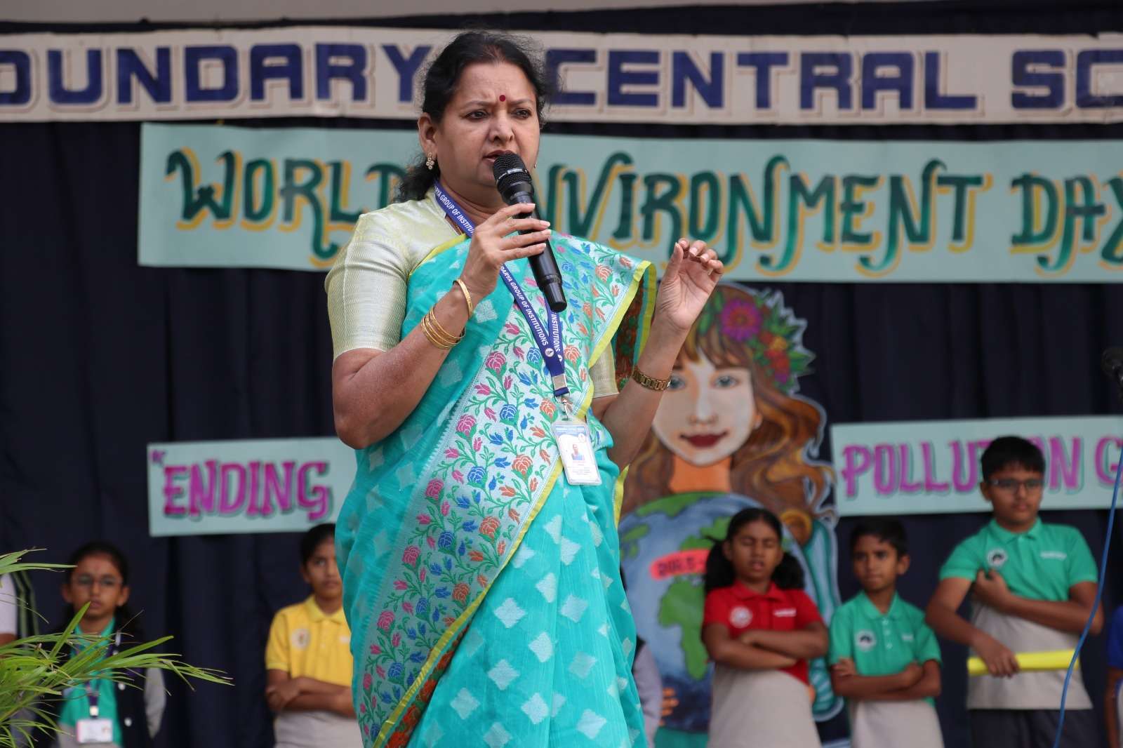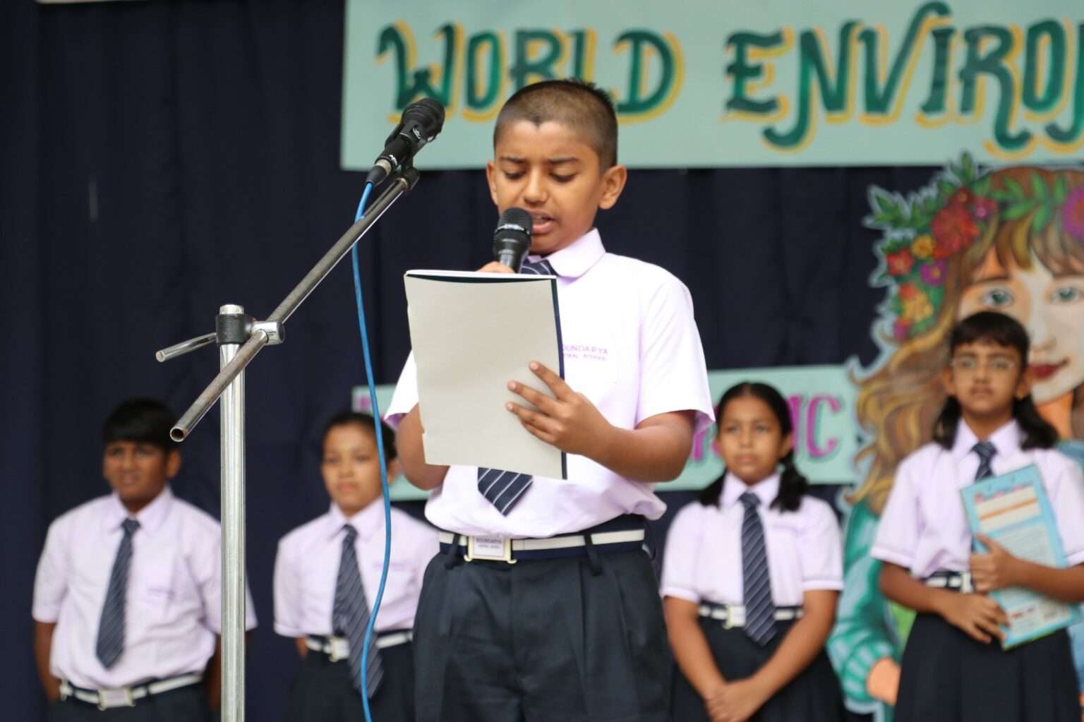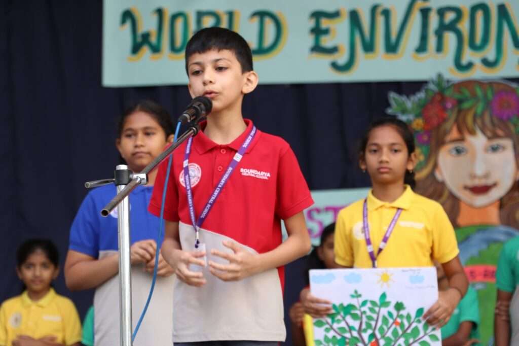 Soundarya Central School celebrated World Environment Day on 5th June 2025 in the morning assembly. The event aimed to raise awareness among students about environmental protection and sustainable living.The assembly began with the students presenting various information on emphasizing the need for planting trees, reducing waste, and conserving natural resources. Students presented information, conducted quiz, amazing fact about the nature and role plays of Sunderlal Bahuguna and Saalumarada Thimmakka talking about the importance of individual efforts in saving the planet. As a symbolic gesture, a plant was given to our Vice Principal.