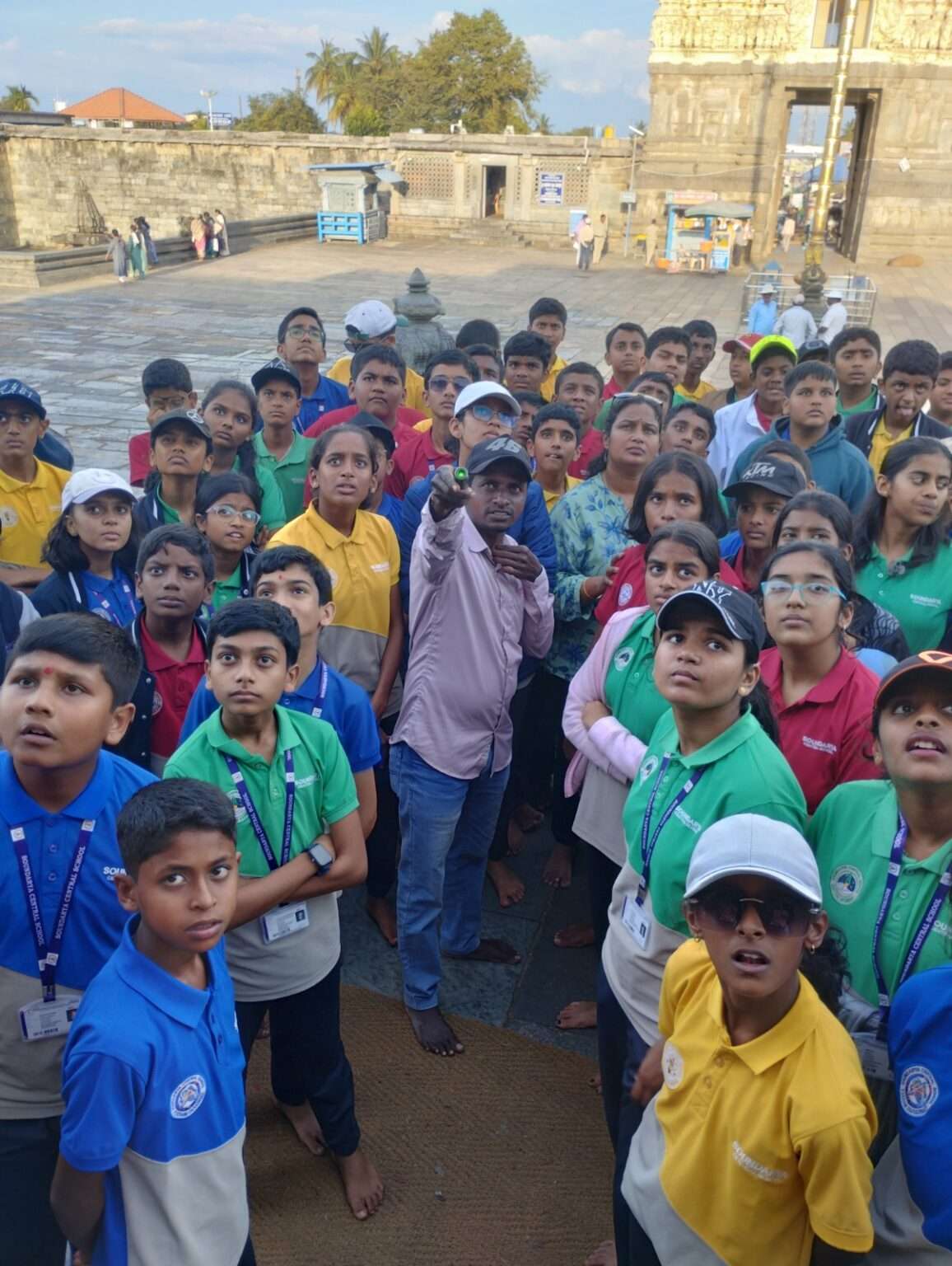 The students of Grade 8 went on an educational trip to Yediyur, Shravanabelagola, Belur and Halebidu on 5th November 2025. The trip was organized by the school to give students a chance to explore the rich cultural and historical heritage of Karnataka.
