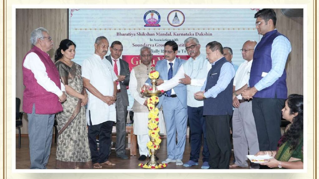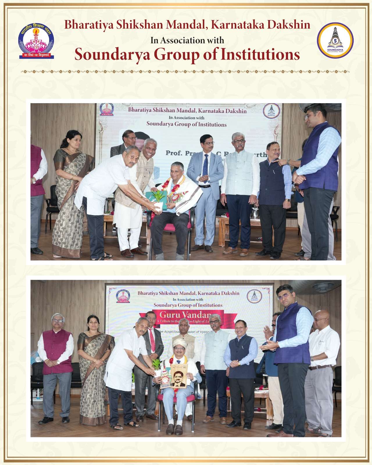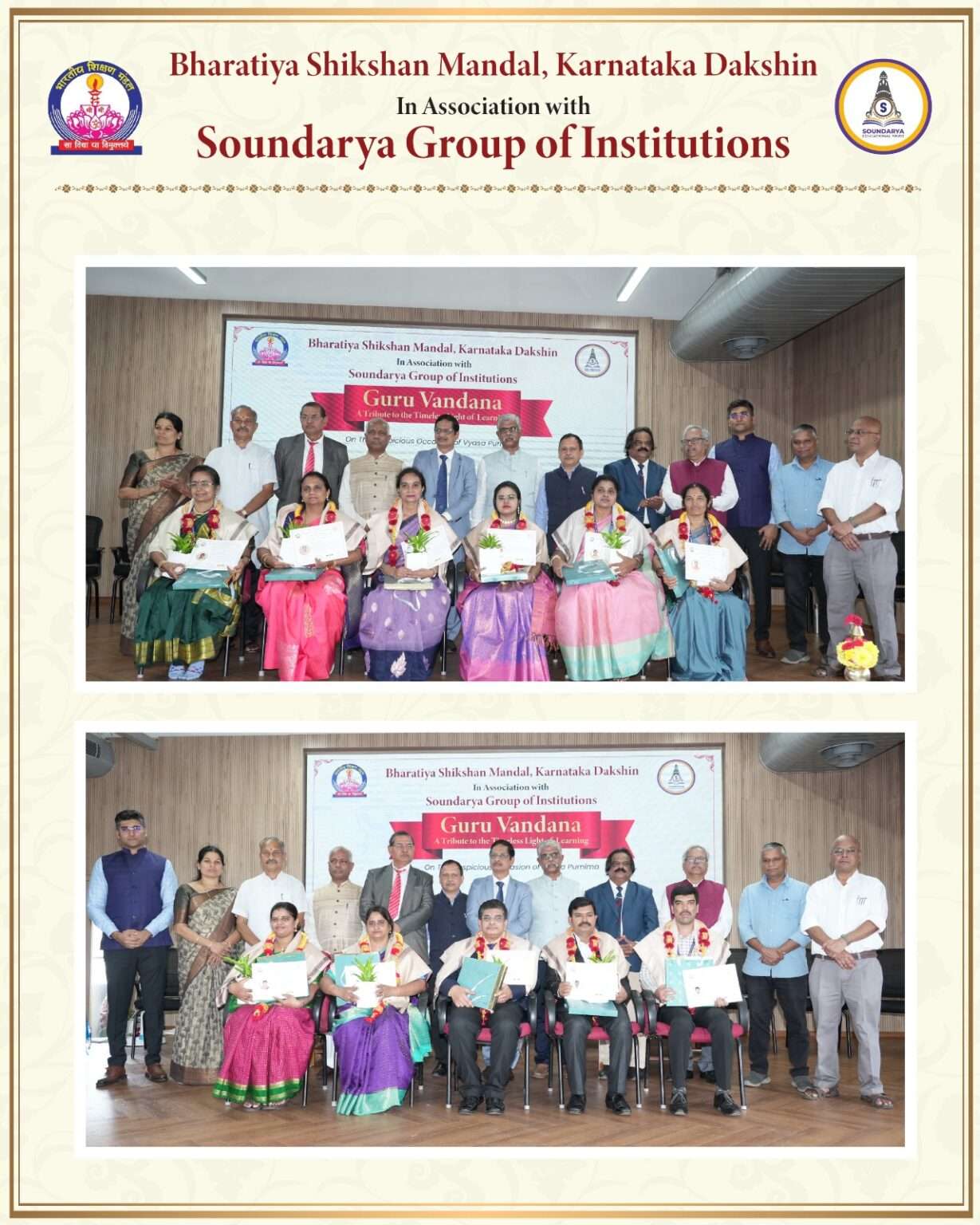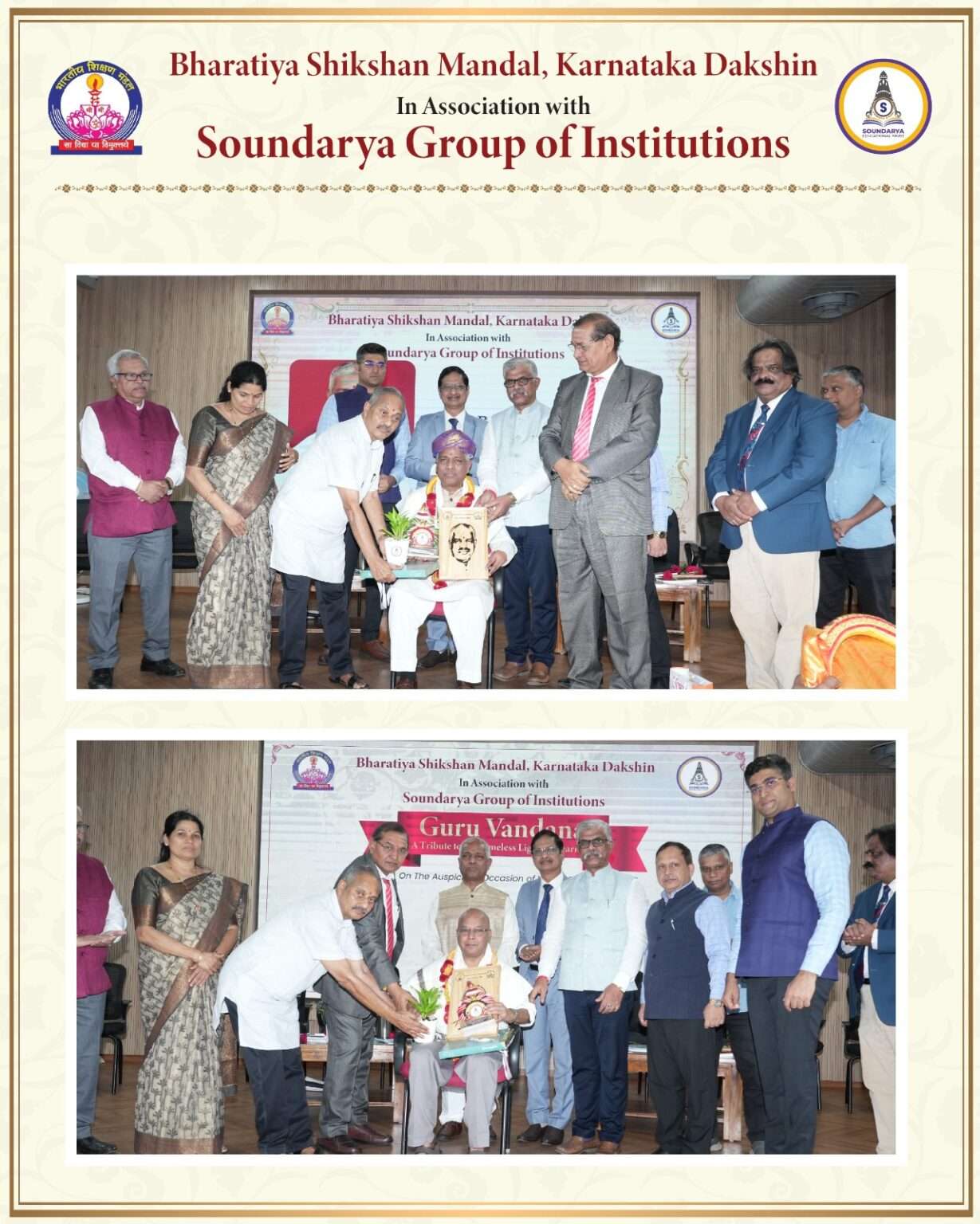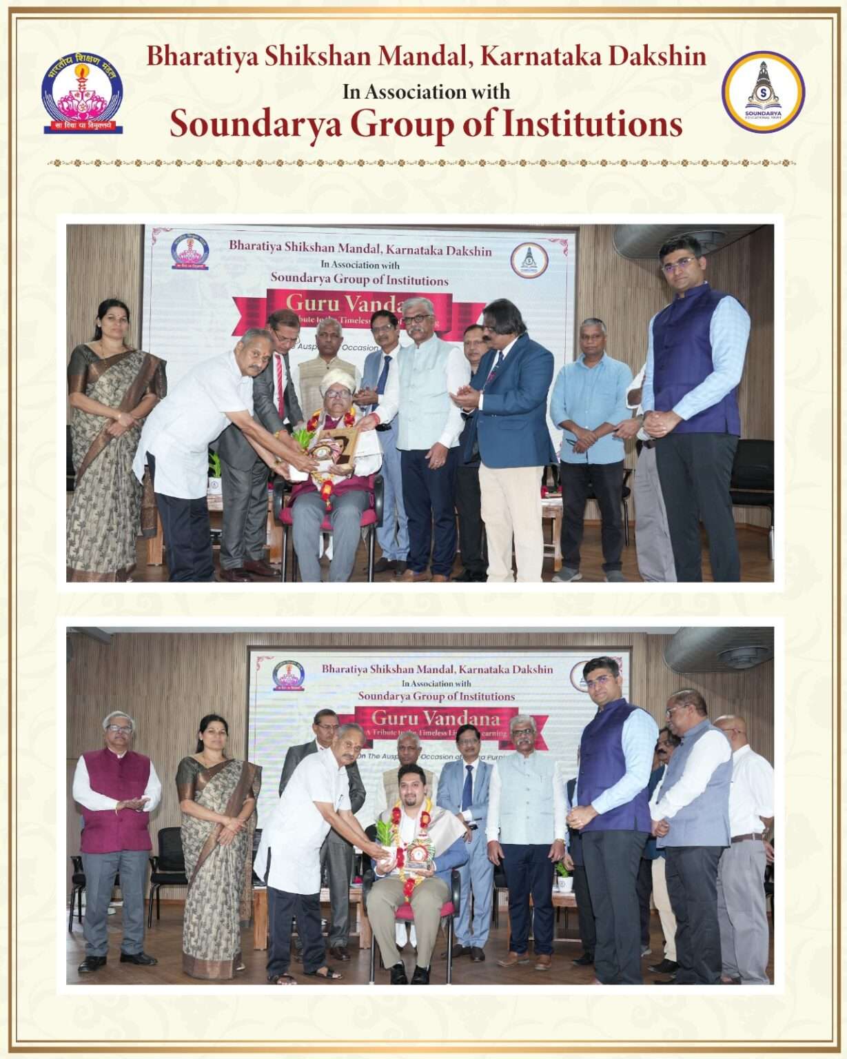 The Bharatiya Shikshan Mandal, Karnataka Dakshin, and Soundarya Group of Institutions held a “Guru Vandana” ceremony on Vyasa Purnima.he ceremony was graced by the esteemed Chief Guest, Shri B.R. Shankaranand Ji, the National Organizing Secretary of BSM.