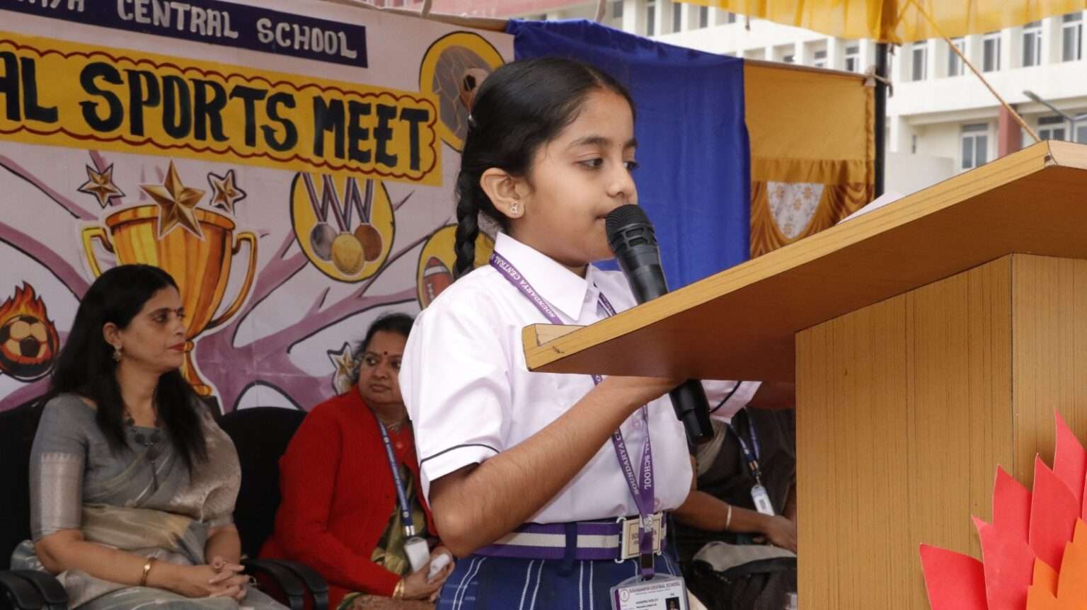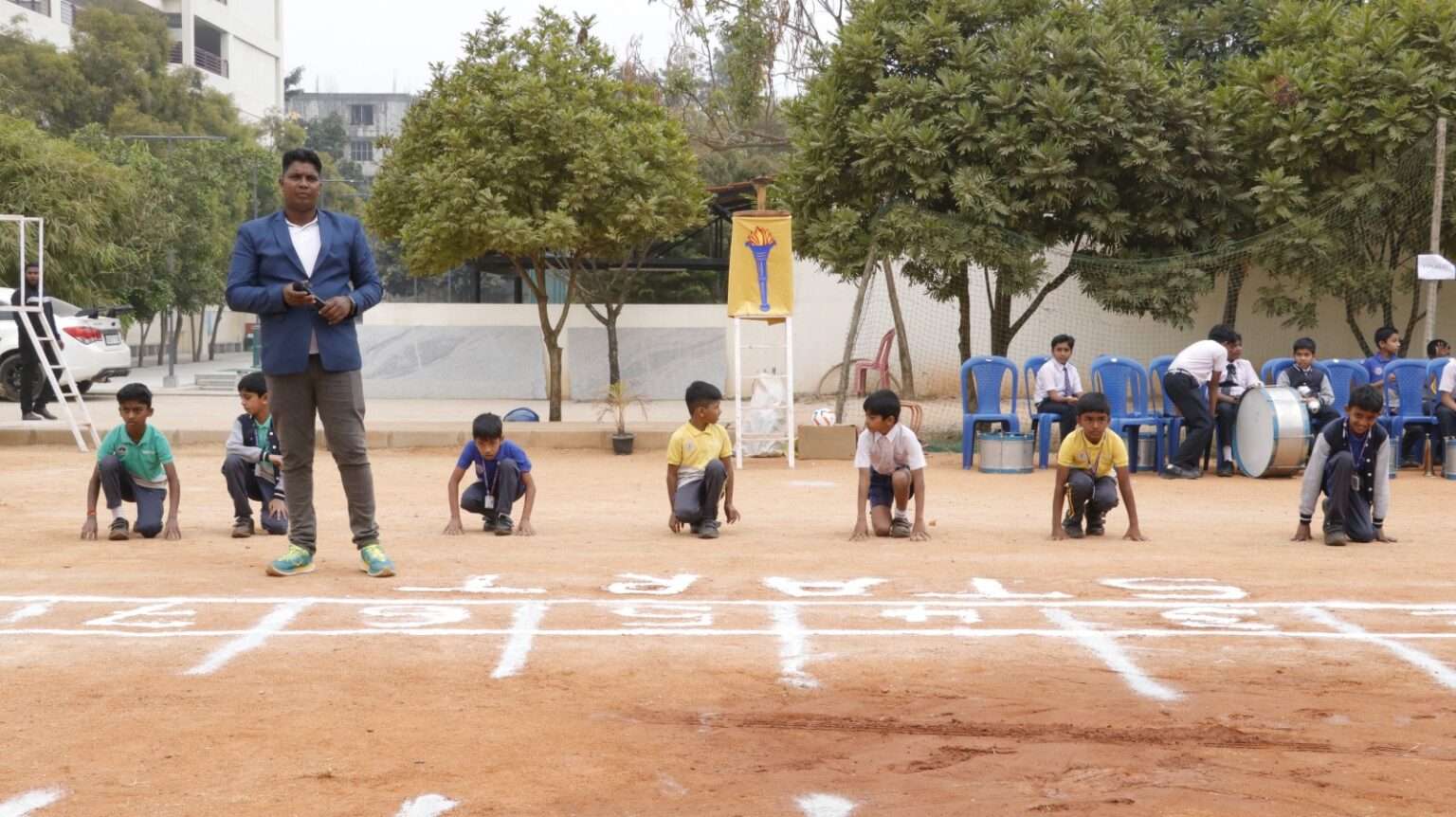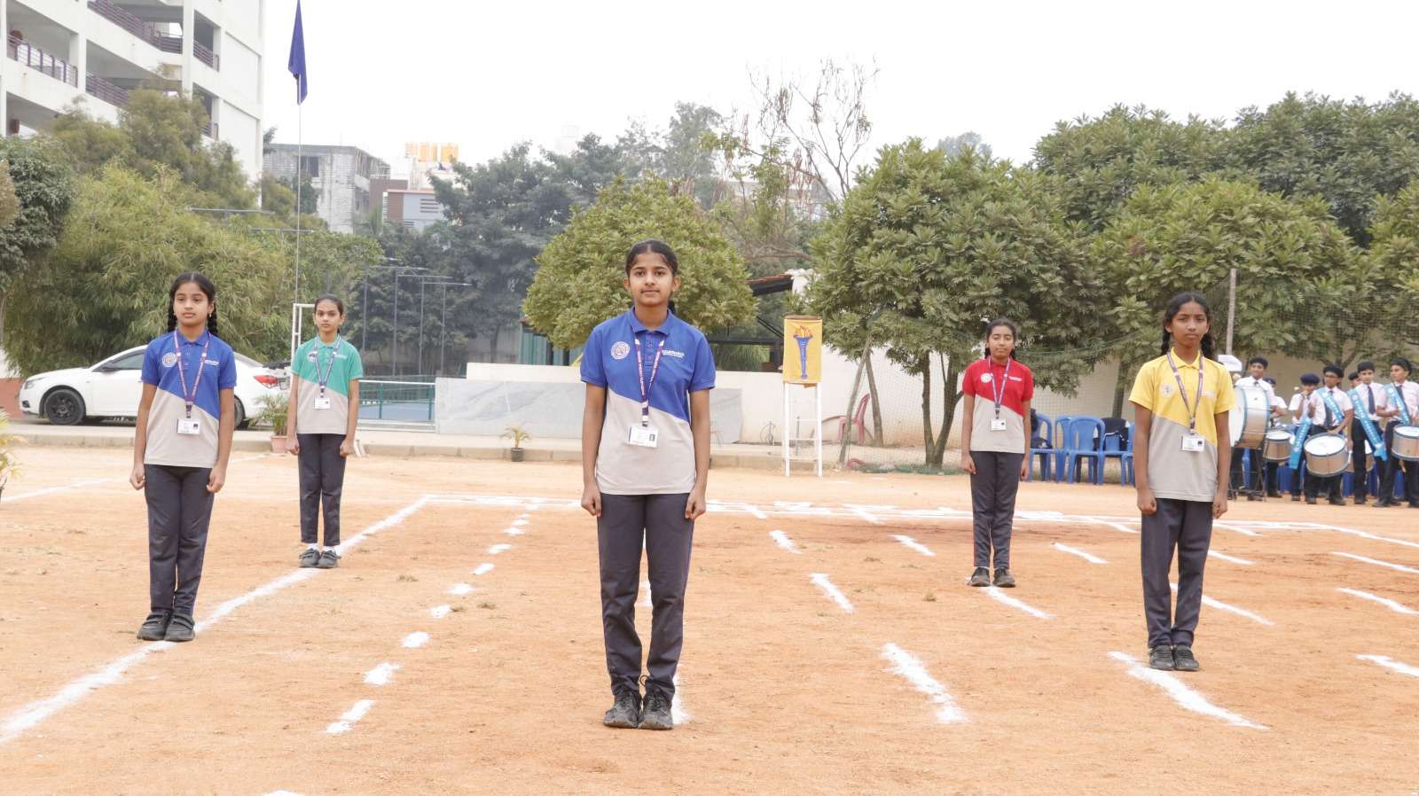 The Principal, Mrs. Renuka Devi, delivered an inspiring address highlighting the importance of sports in character building, resilience, and holistic development. This was followed by the official declaration of the meet by the Vice Principal, Mrs. Ramya Krishna.