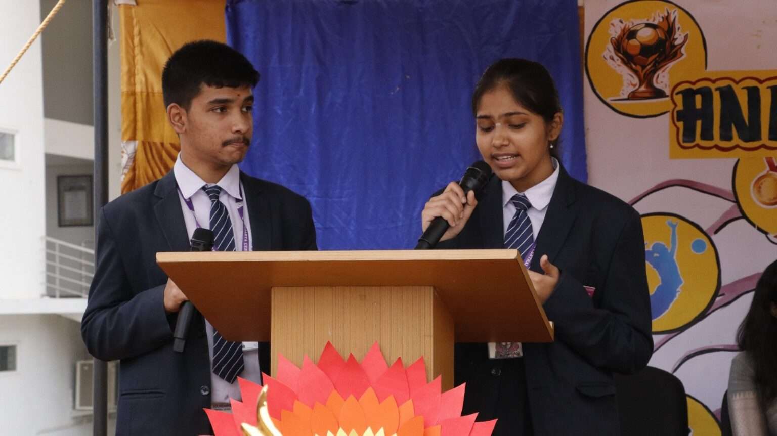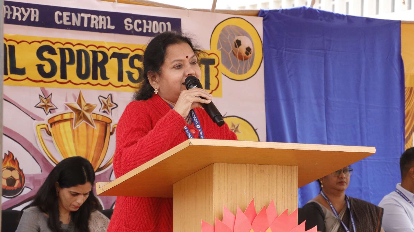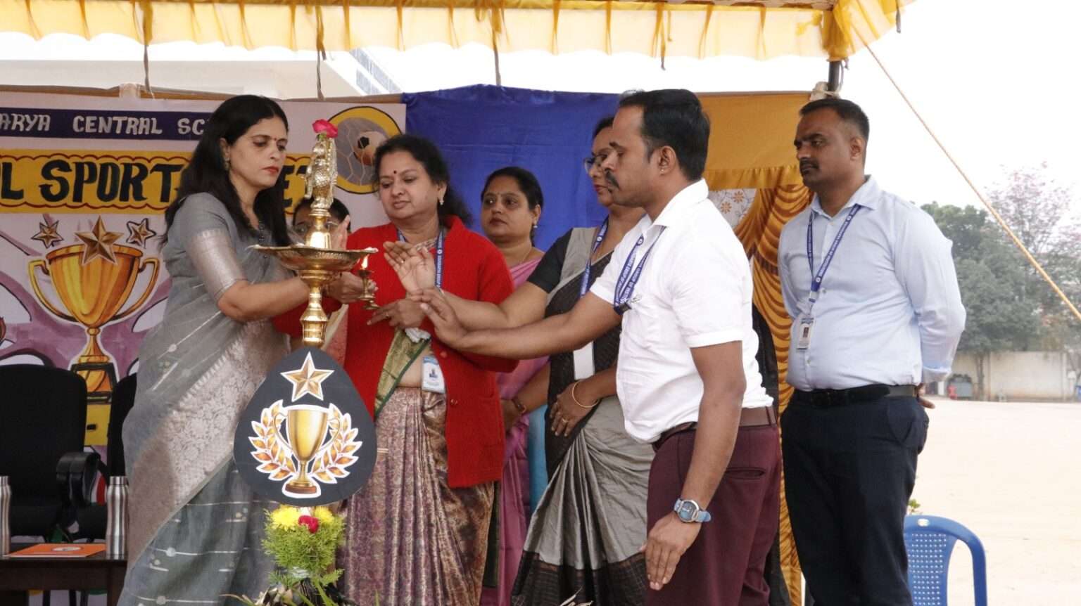 The Principal, Mrs. Renuka Devi, delivered an inspiring address highlighting the importance of sports in character building, resilience, and holistic development. This was followed by the official declaration of the meet by the Vice Principal, Mrs. Ramya Krishna.