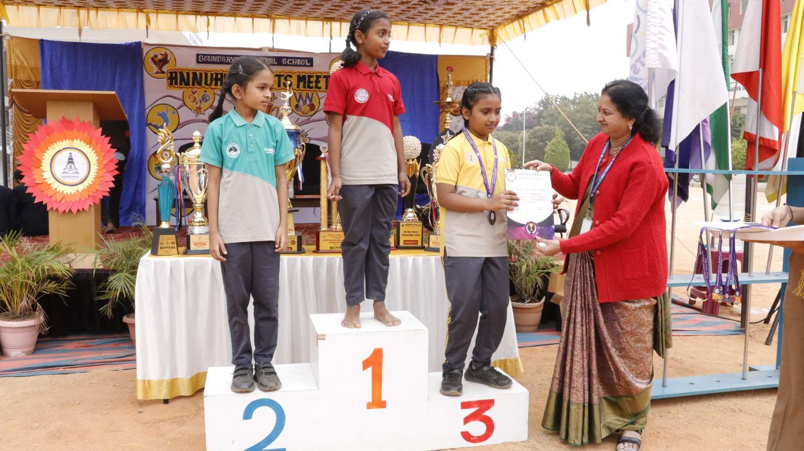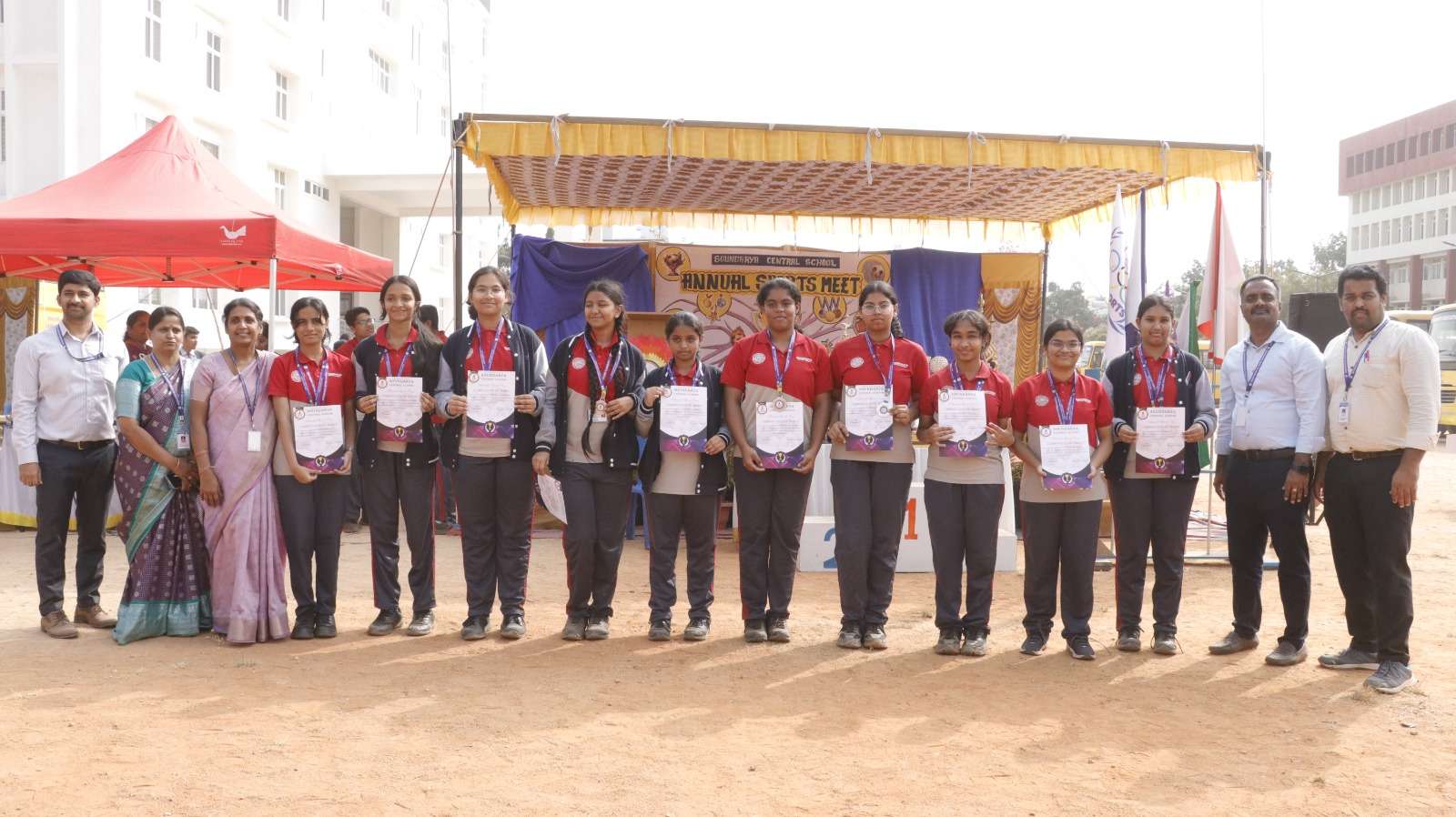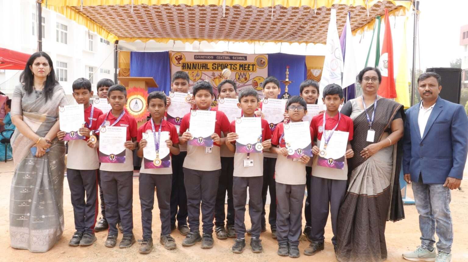 Soundarya Central School proudly celebrated its Annual Sports Meet for the academic year 2025–26, showcasing remarkable energy, enthusiasm, and exemplary sportsmanship among students from Montessori to Grade XII.
