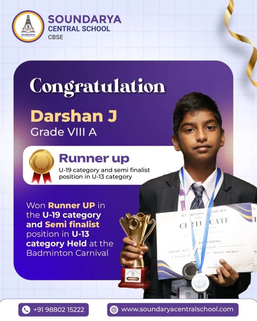 Darshan’s achievements have made him a proud representative of the school and continue to inspire fellow students and young athletes to pursue excellence in sports