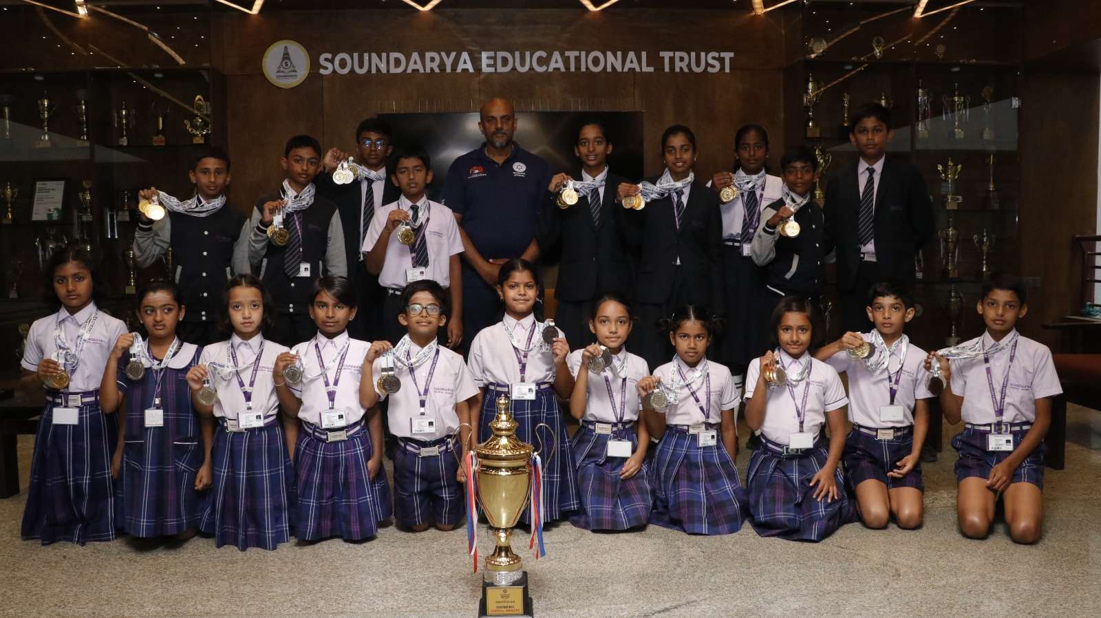 We are absolutely thrilled to announce a spectacular achievement by our students! Soundarya Central School has emerged as the *Overall Champions* of the prestigious *Invictus 6.0* Inter-School Swimming Competition!