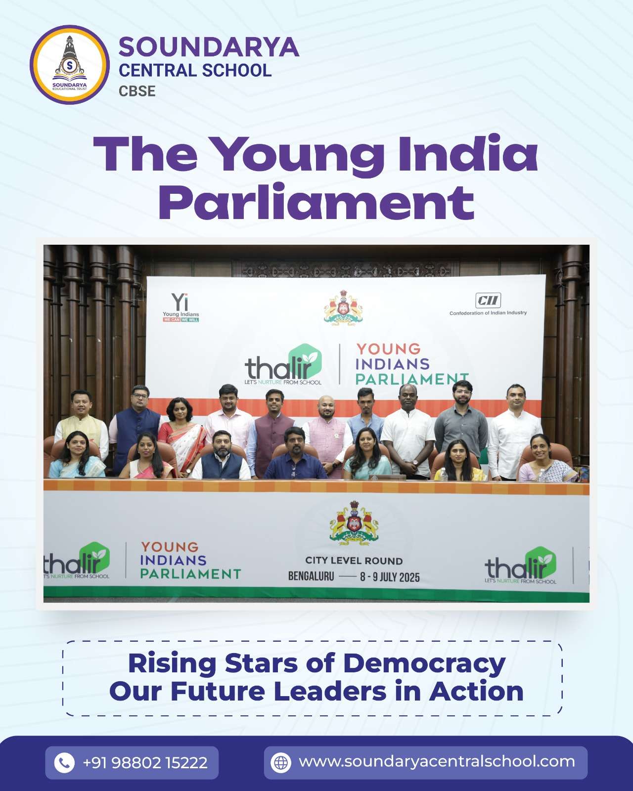 Representing Soundarya Central School with exceptional poise, knowledge, and confidence, six of our bright students participated in this prestigious platform, designed to simulate the workings of the Indian Parliament and nurture the leaders of tomorrow.