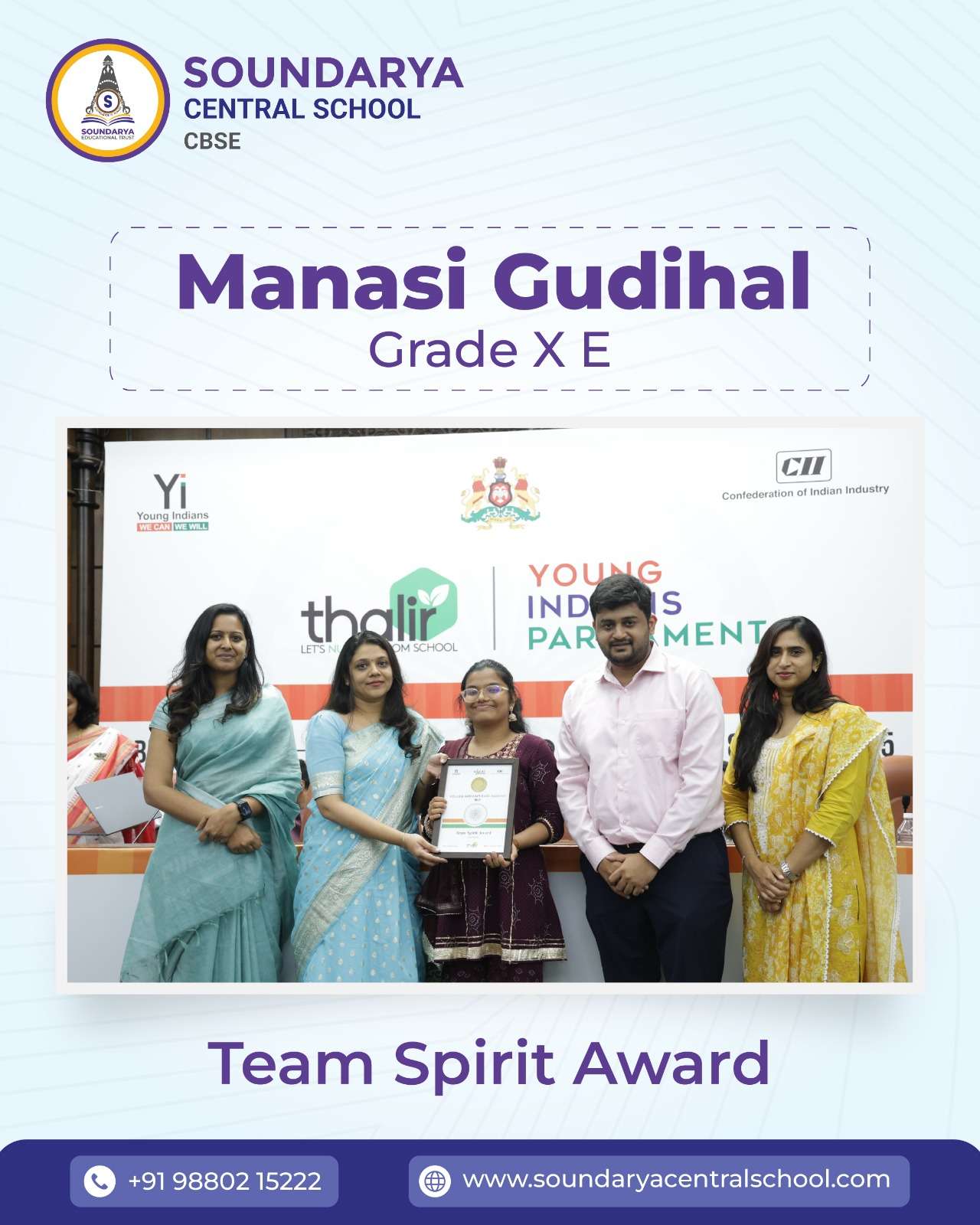 1. Manasi Gudihal of Grade XE – Team Spirit Award