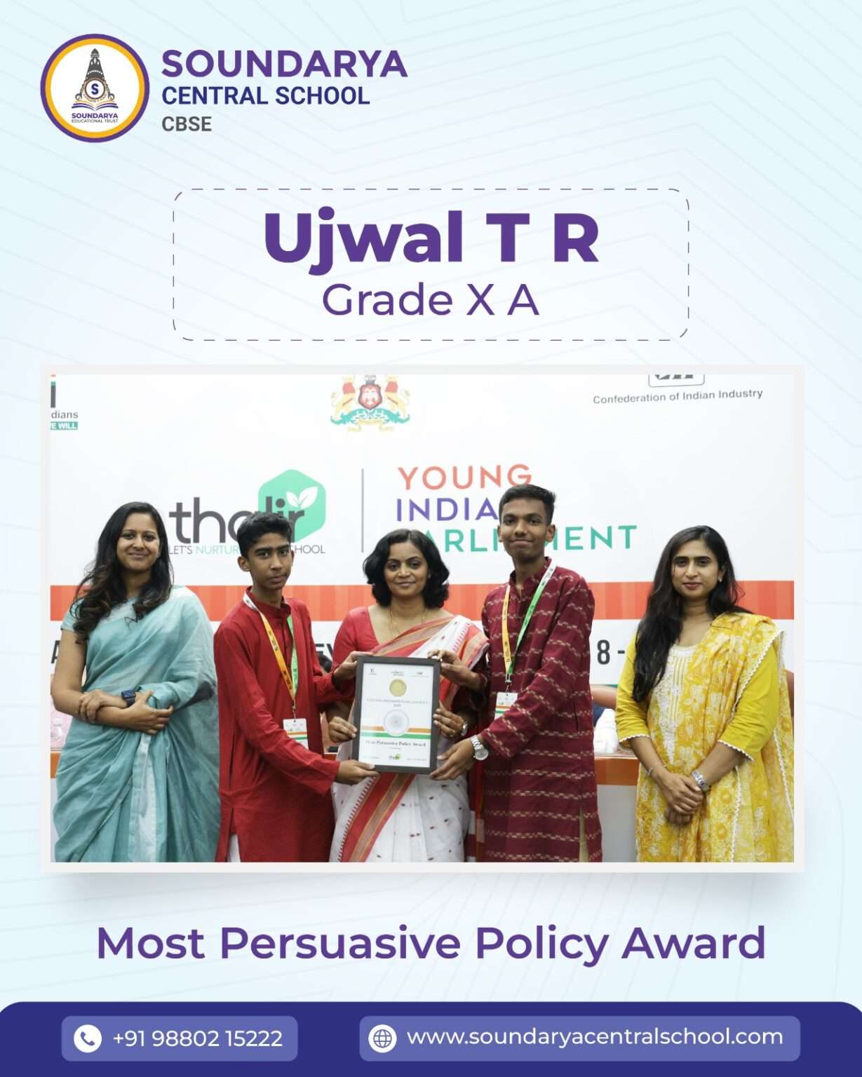 1. Ujwal T R of Grade XA – Most Persuasive Policy Award